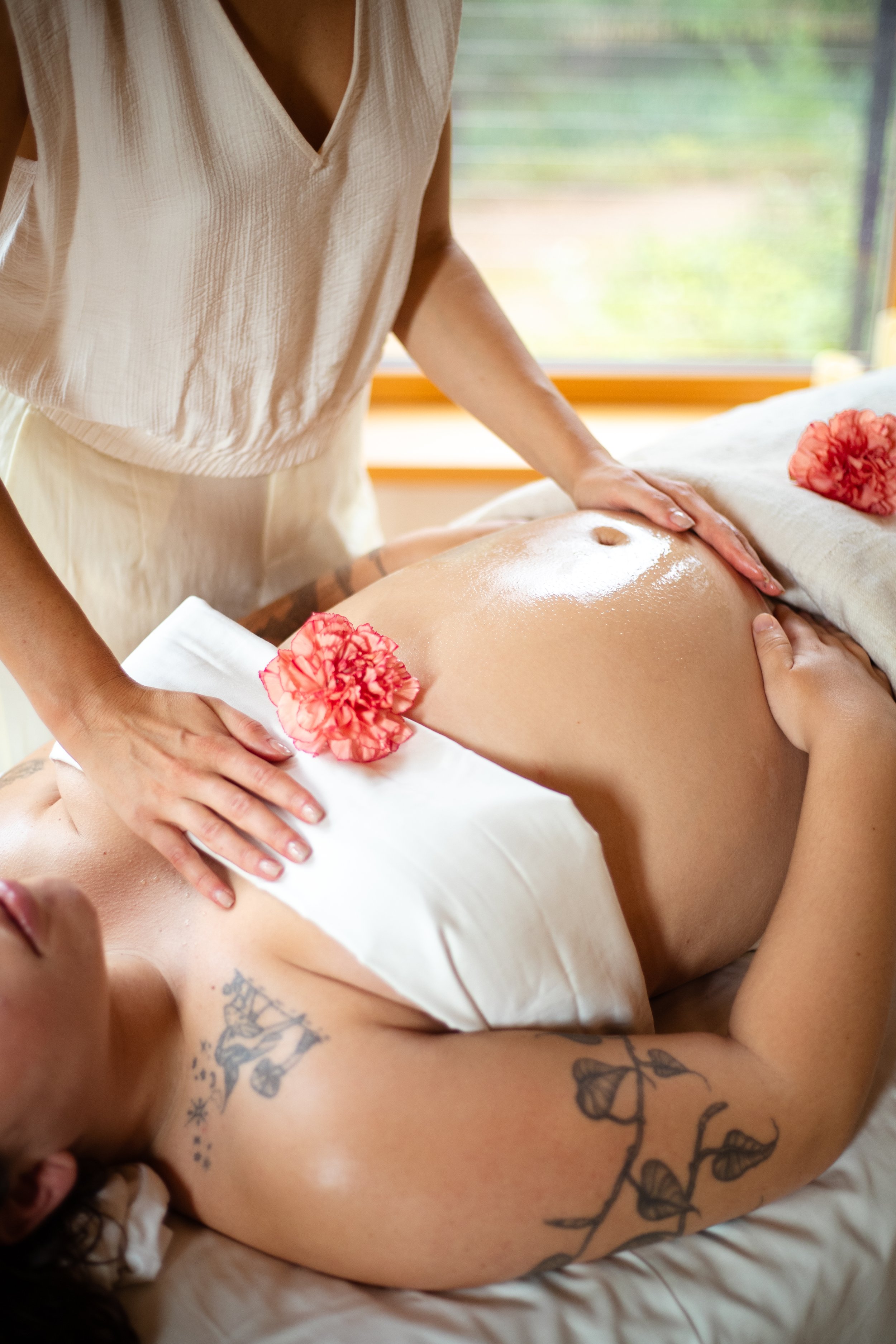 A therapeutic practice that helps ease common discomforts of pregnancy. Prenatal massage can reduce back, hip, and leg pain; improve circulation and lymphatic flow; decrease swelling; and promote deeper, more restful sleep. Gentle, specialized techniques also support hormonal balance, calm the nervous system, and prepare the body for labor while offering a nourishing space for mother–baby connection.