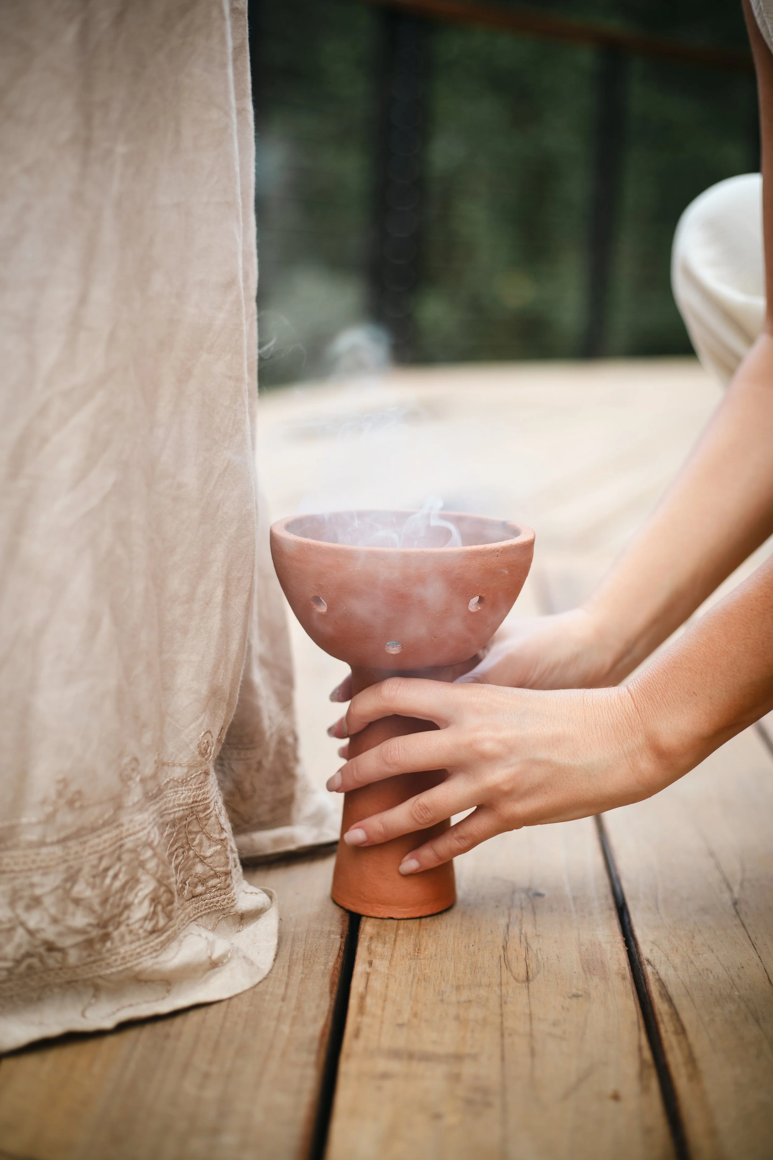 A traditional practice of sitting over warm, herbal-infused steam to gently nourish the pelvic bowl and womb. The steam supports circulation, softens tissues, and assists the body’s natural detoxification processes. Pelvic steaming may ease menstrual discomfort, support postpartum healing, balance cycles, and invite deeper connection to your feminine center. This ritual is both therapeutic and ceremonial, offering warmth, softness, and renewal to the body and spirit.